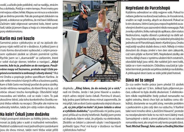 Práci našich cyklokurýrů se věnuje reportáž redakce časopisu Transport a logistika.