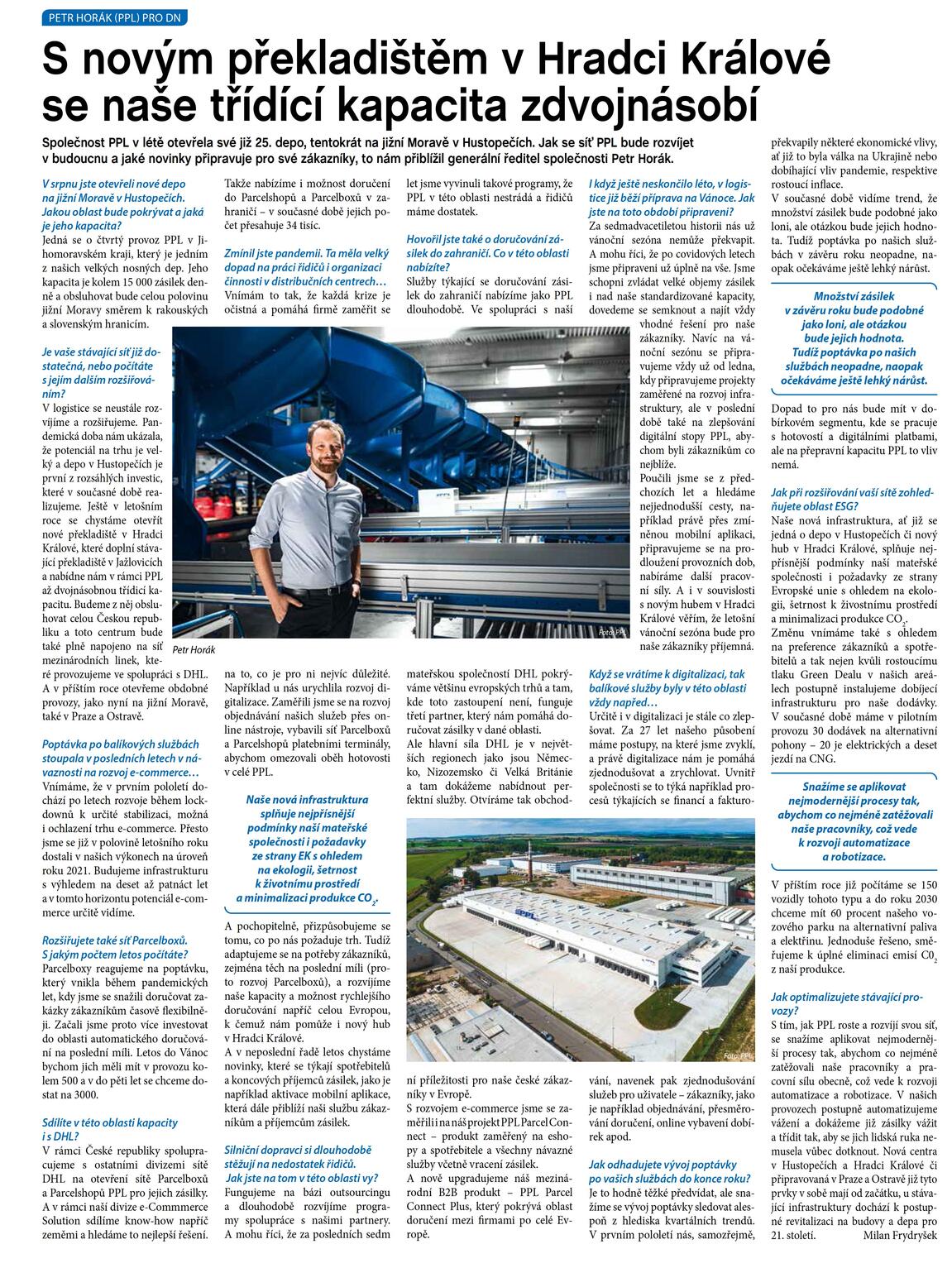 PPL v létě otevřela své již 25. depo, tentokrát na jižní Moravě v Hustopečích. Jak se síť PPL bude rozvíjet v budoucnu a jaké novinky připravuje pro své zákazníky, to redakci přiblížil generální ředitel společnosti Petr Horák.