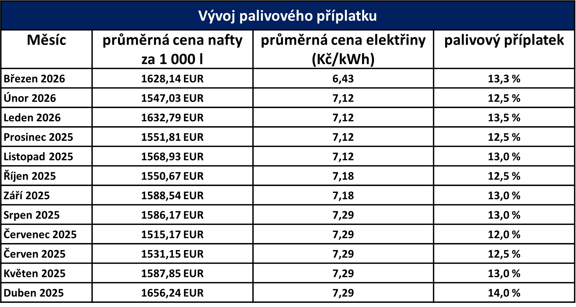 chtěli bychom vás informovat o palivovém příplatku, který činí pro měsíc březen 2026 13,3 %.