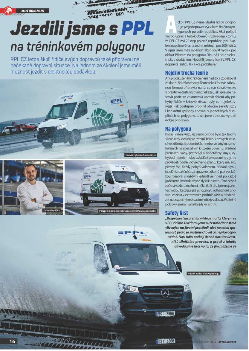Ačkoli PPL CZ nemá vlastní řidiče, podporuje svoje dopravce výcvikem řidičů na polygonech po celé republice. Akci pořádá ve spolupráci s Autoklubem ČR. Vzhledem k tomu, že PPL CZ má 25 dep po celé republice, jsou školení naplánována na sedmi místech pro 200 řidičů. V říjnu měla redakce časopisu možnost absolvovat výcvik pro oblast Příbram na polygonu Dlouhá Lhota s elektrickou dodávkou.