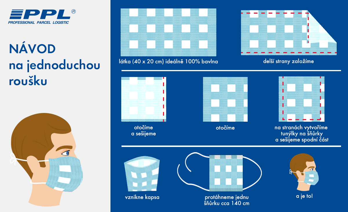 Stačí si objednat svoz vyplněním dotazníku na odkaze bit.ly/rouškyproPPL. Podmínkou je poslání alespoň 30 kusů roušek. Roušky je třeba zabalit jako běžný balík do kartonové krabice.